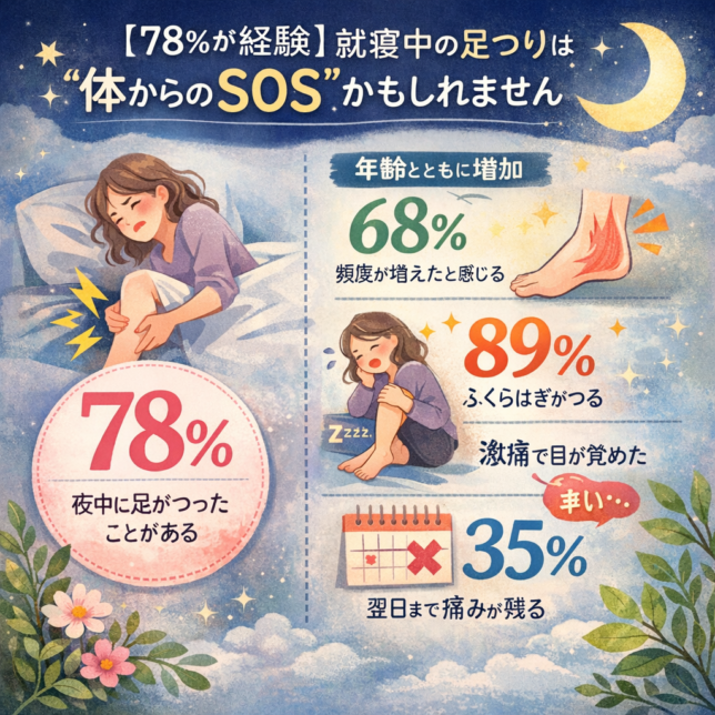 ここ2〜3年のうちに就寝中に足がつったことがある人は78%。